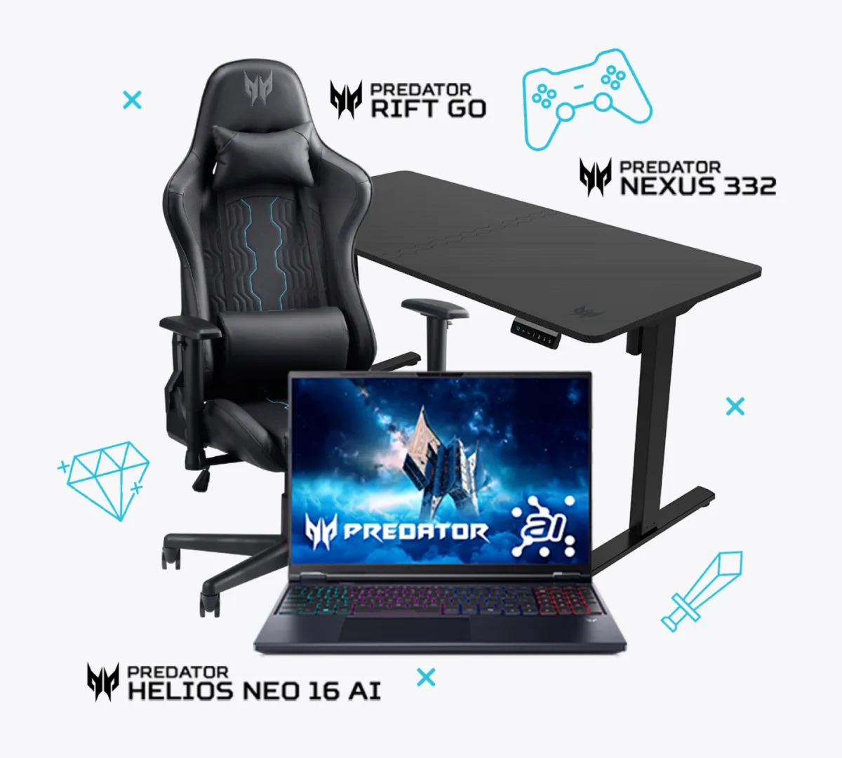 Розігруємо один ноутбук Acer Predator Helios Neo 16 AI (PHN16-73-792W), один ігровий електричний стіл Acer Predator Nexus (PGD 332) та одне ігрове крісло Acer Predator Rift Go (PGC 331) через сервіс Random.org серед усіх учасників, які отримали дві посилки за попередній тиждень, зареєстрували номер та виконали всі умови Акції.