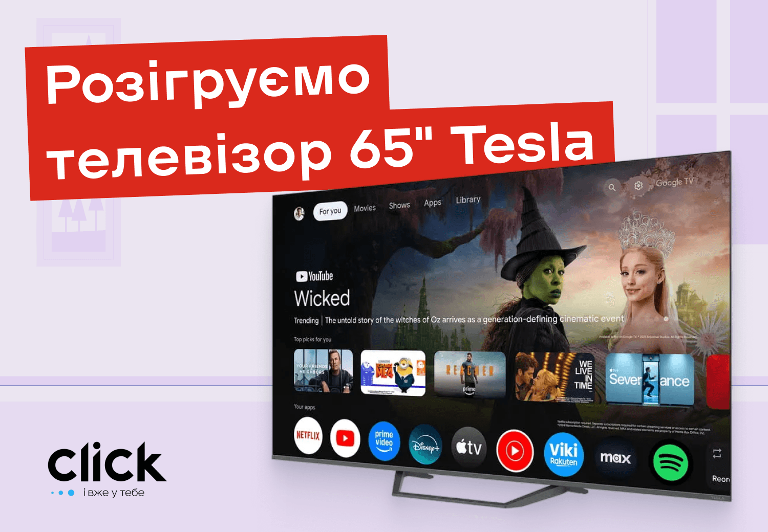 - Головний приз: стильний телевізор Tesla Q65E655GUS