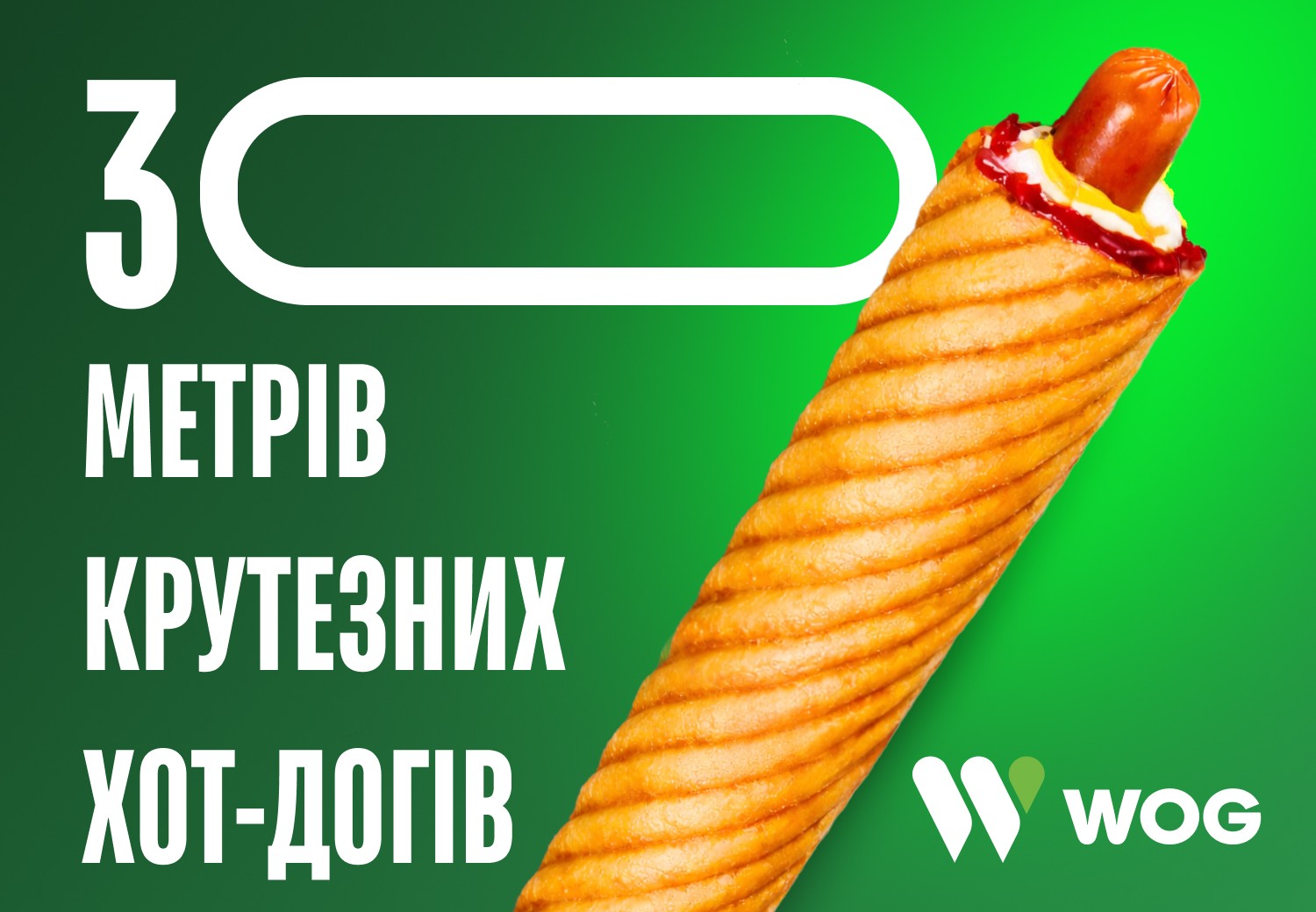 - Головний приз: 30 метрів хот-догів розігруємо серед 10 переможців, кожен з яких отримає по 3 метри хот-догів на гаманець WOG*.